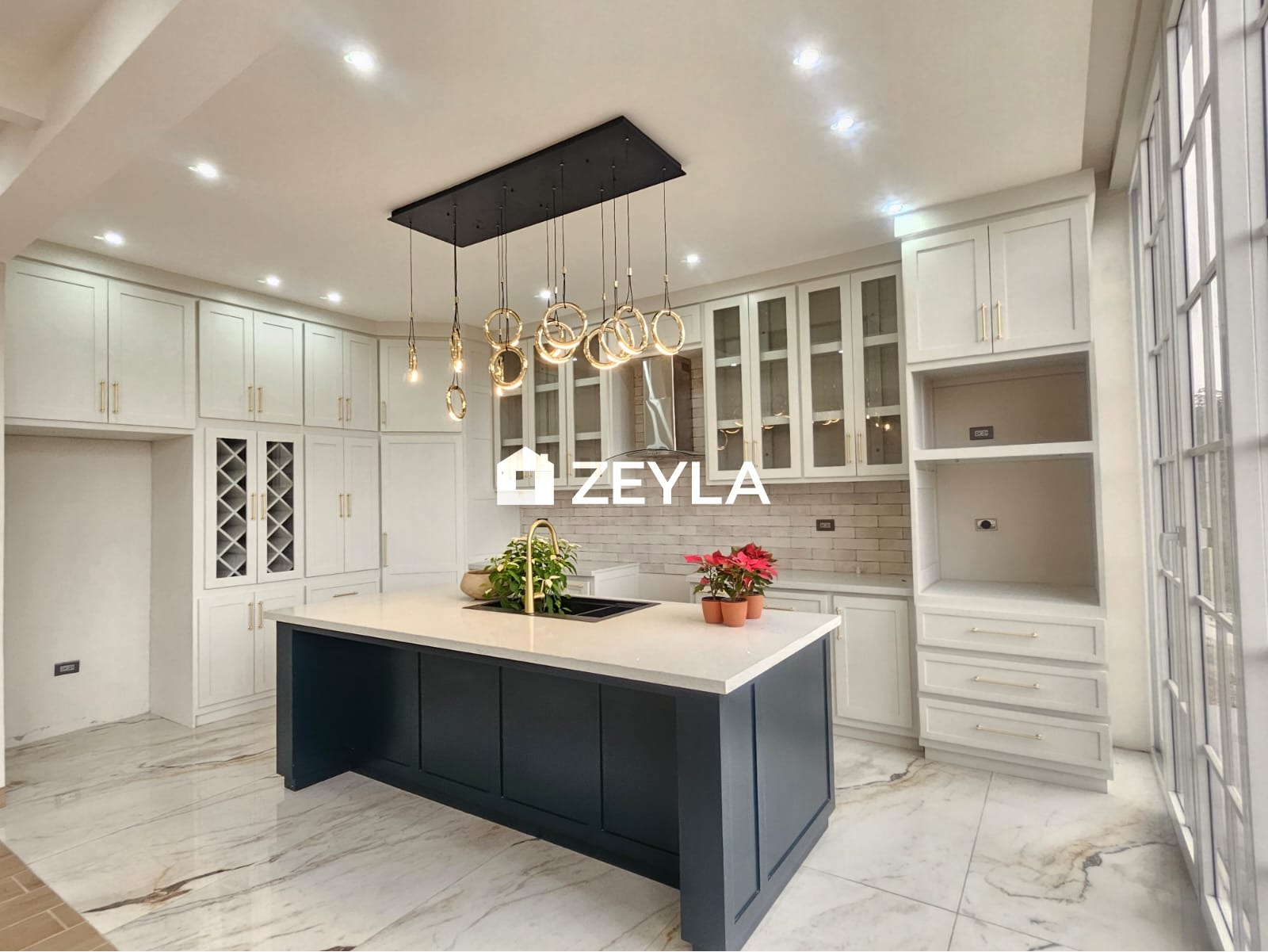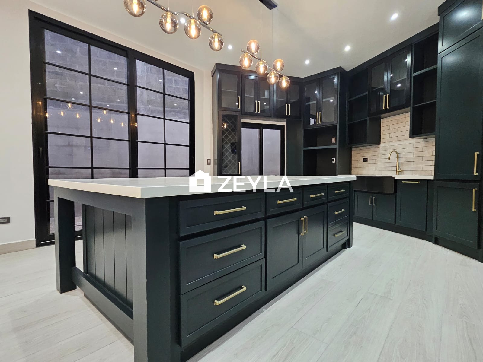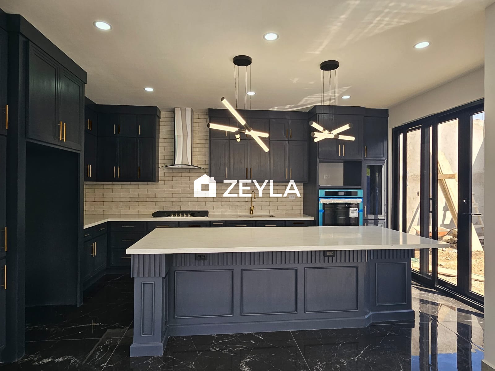 Cocina con muebles con top cuarzo e isla